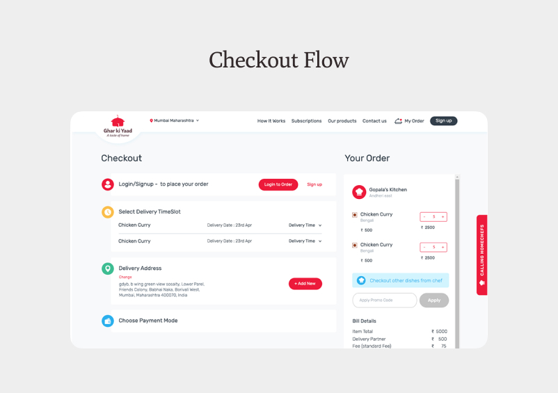 Ghar Ki Yaad’s web application required to excel in several areas, including providing a faultless user experience, exhibiting a variety of home chefs and menus, and assuring a reliable, fast order handling system.
